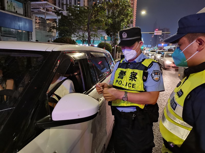 民警设置治安卡点排查车辆。(福田公安分局供图)
