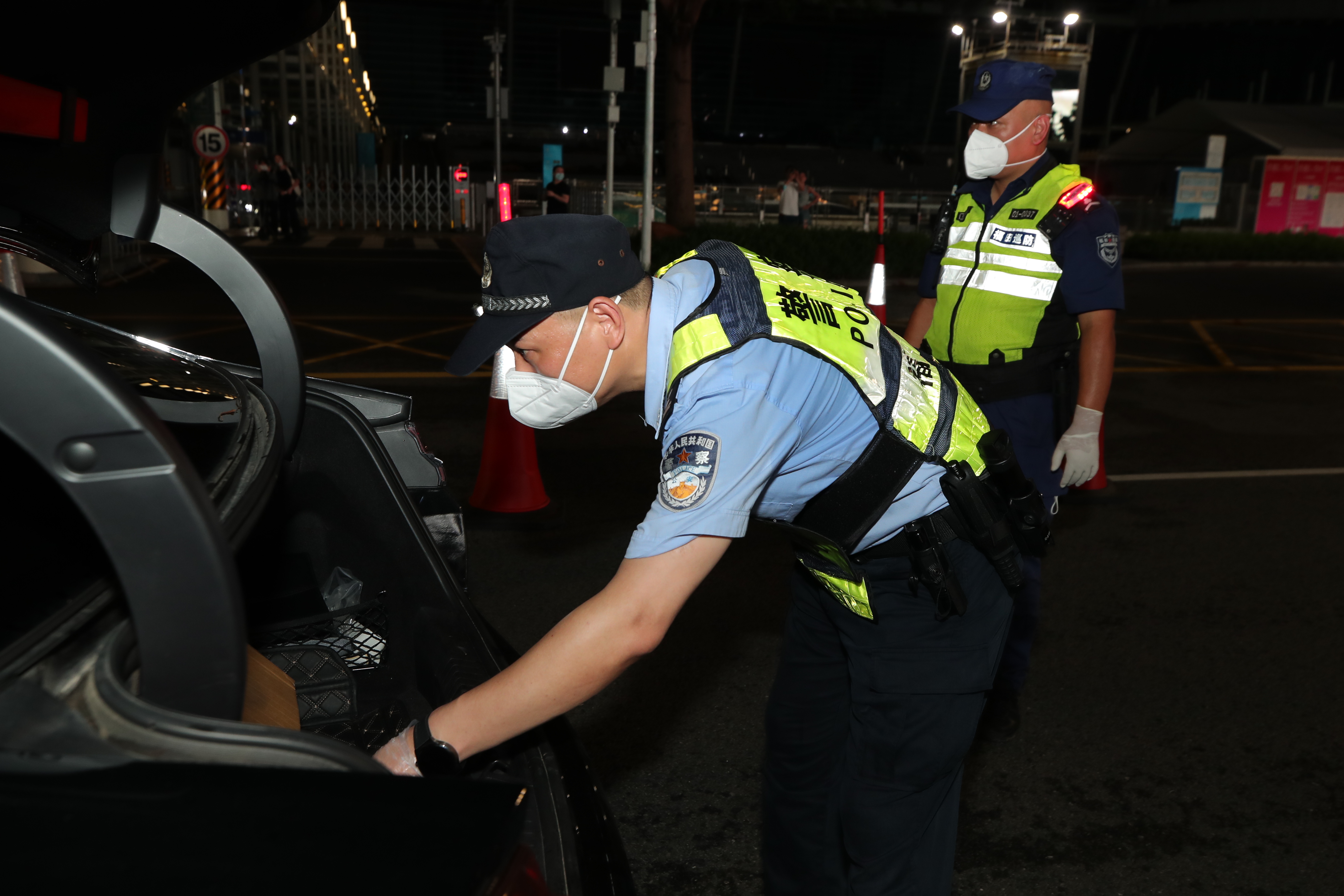 民警设卡查缉车辆。(福田公安分局供图)