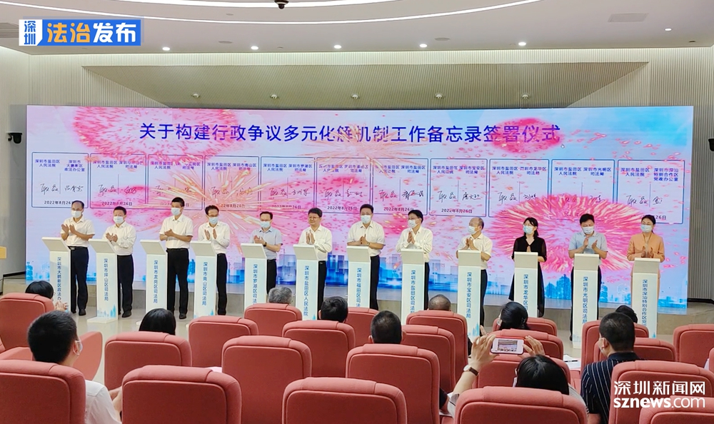 读特客户端·深圳新闻网2022年8月26日讯(记者 张玲 翁任莹 通讯员 肖波)8月26日上午,深圳市盐田法院与深圳市各区司法局、大鹏新区政法办、深汕特别合作区党政办共同签署《关于构建行政争议多元化解机制的工作备忘录》,建立府院联动机制,逐步形成具有深圳特色的行政争议诉源治理模式,最终实现诉源治理、案结事了的良好效果。