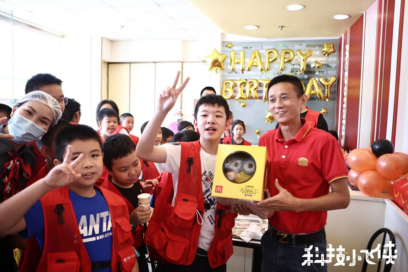 值得一提的是,成长营第二天还迎来了一位“小飞侠”的生日,在午饭间隙,孩子们一同在麦当劳餐厅给这位小寿星唱起了生日歌,为他送上生日祝福。