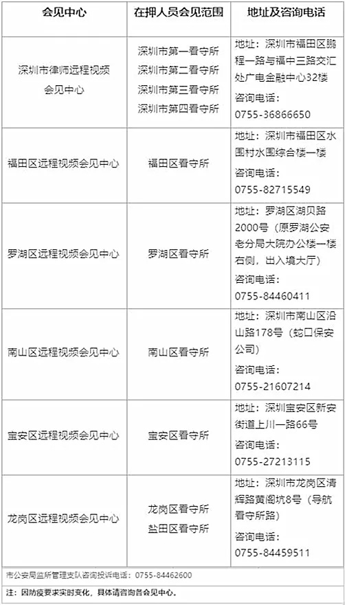 9月13日起,深圳全市监所恢复办理远程视频律师会见业务