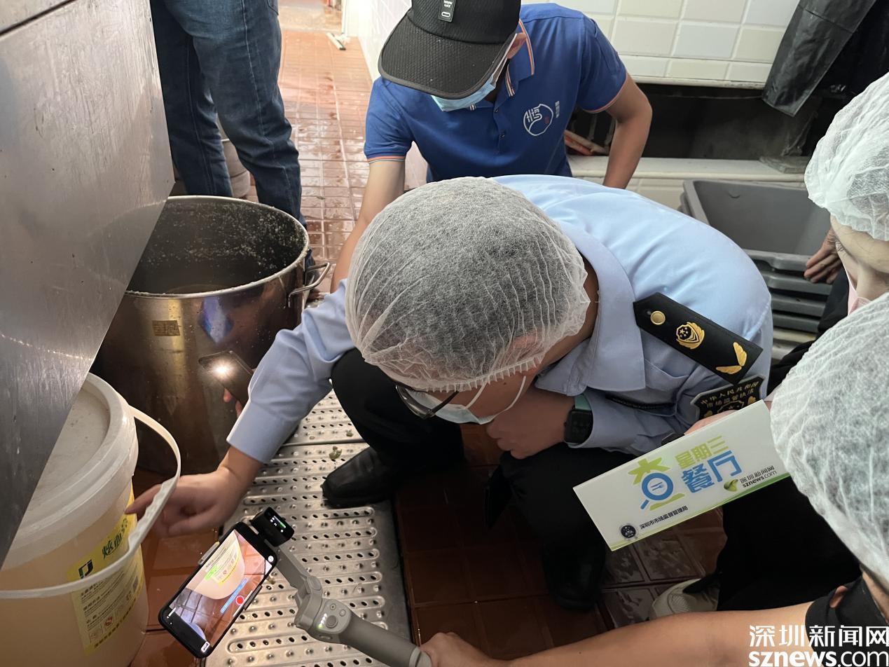 读特客户端·深圳新闻网2022年10月19日讯(记者 牛耘 翁瑞峰 袁征一方 曾思达)“星期三查餐厅,让深圳人吃得更放心。”为提升食品安全管理水平、保障深圳餐饮食品安全,本期“星期三查餐厅”来到位于大鹏新区的鹏城印象·美食新地标,对这里餐厅的食品安全情况进行突击检查。经查,该餐厅在后厨卫生、索证索票、员工管理等方面基本符合要求,但仍有部分细节问题需改进,如标签缺漏、更新不及时等。