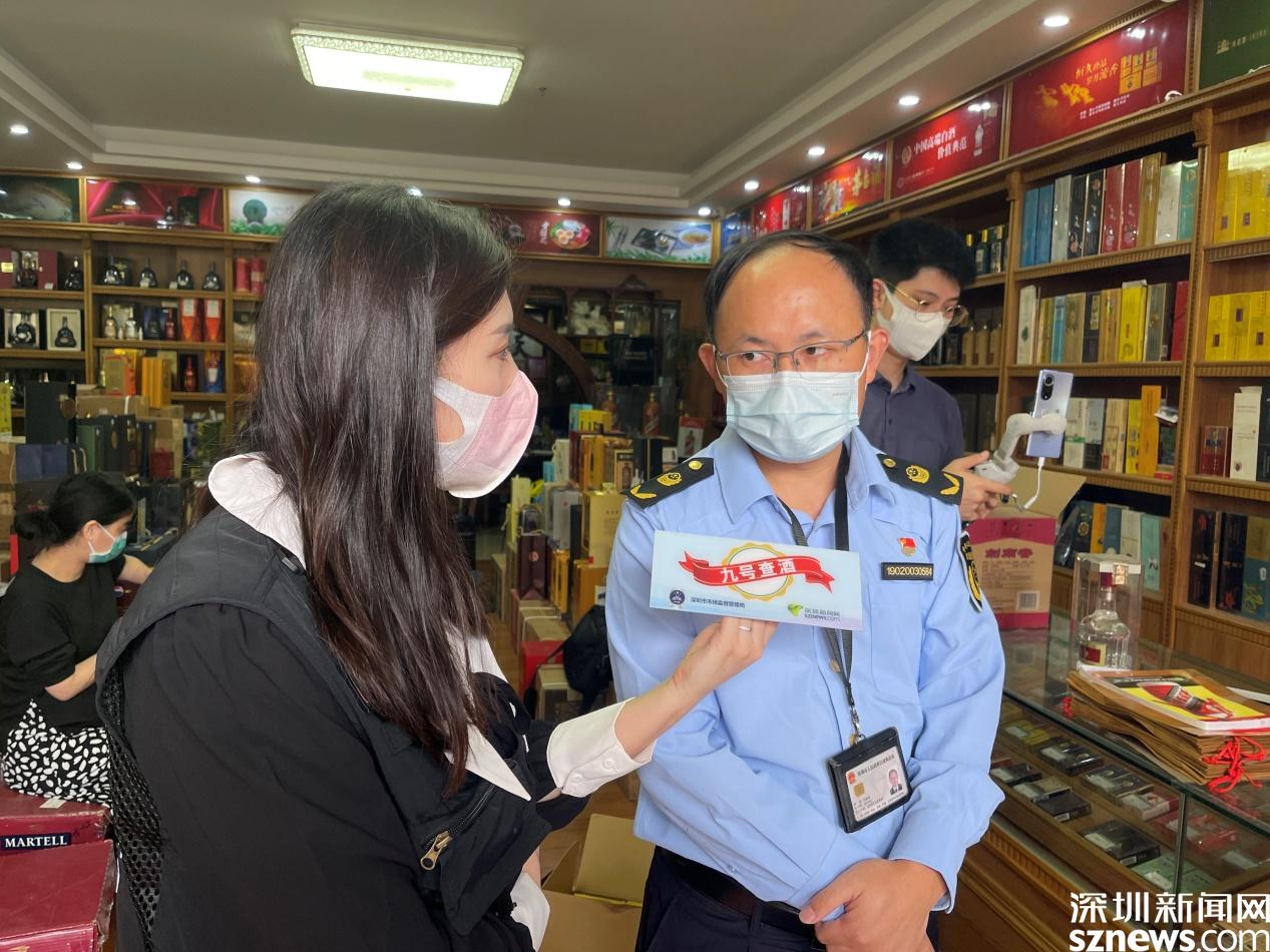 深圳市市场监管局食品经营处执法人员施捷维表示,开展本次行动是因为前期收到投诉举报,今天特意和行业打假专家联合一起来该店进行检查。行业专家平时也会协助市市场监管局对深圳酒水市场进行摸排,有线索就会提供给市场监管部门,执法人员会根据线索进行执法检查。他表示,今天行动有效地打击了假冒酒类市场。同时,他也对上一期“九号查酒”的散装酒抽检结果进行了公示,所有散装酒均符合要求。