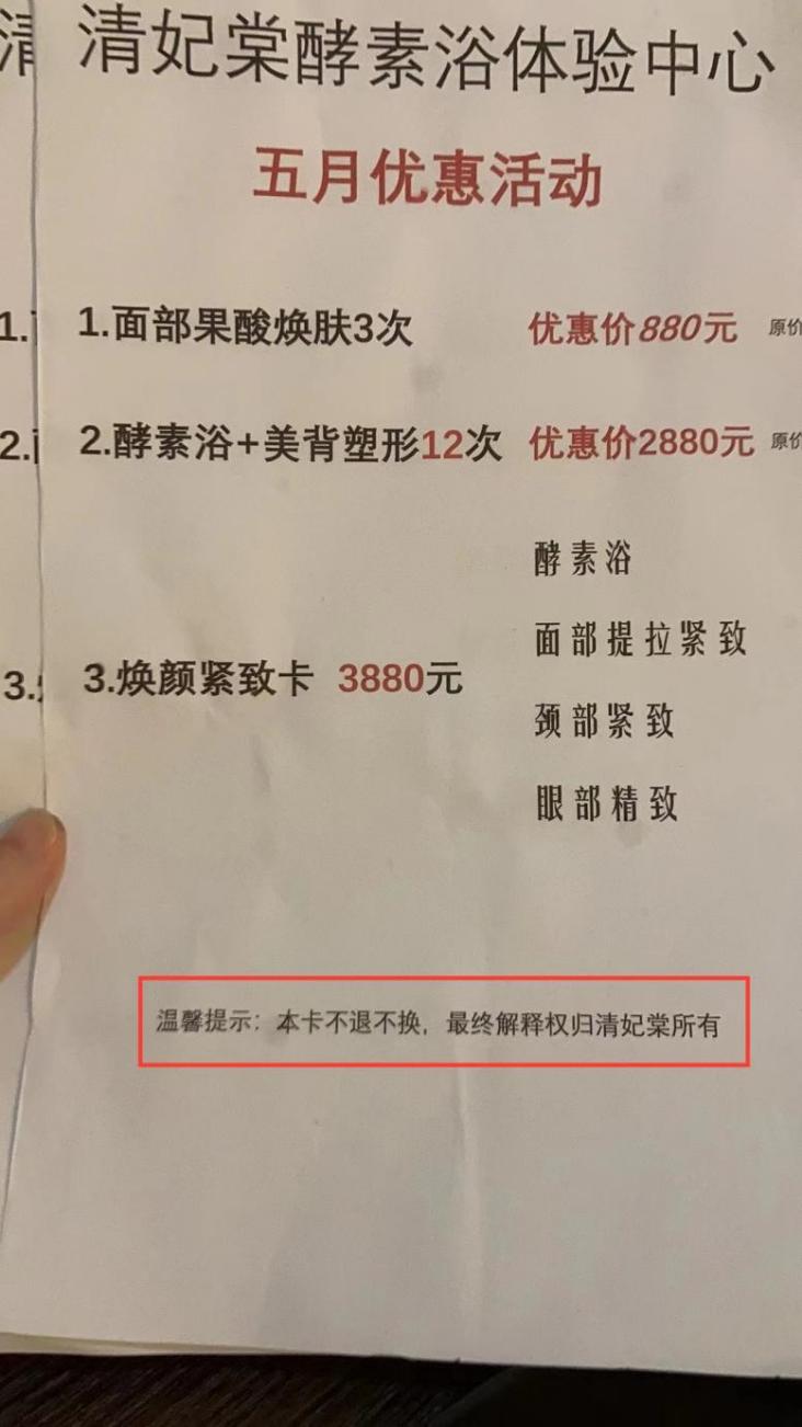 清妃棠·酵素浴体验中心(福田店) :退款需按原价补差价