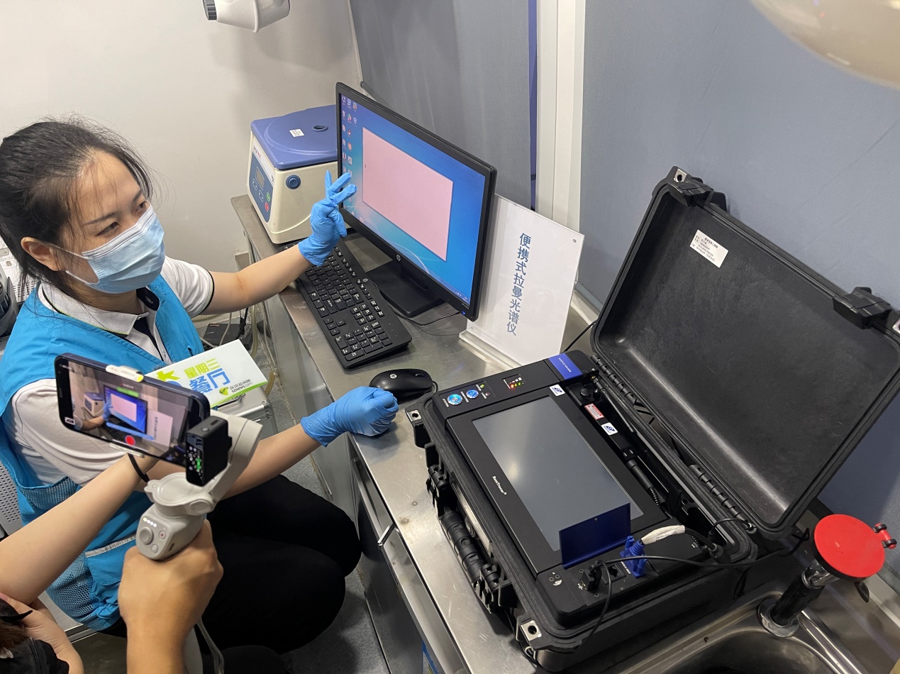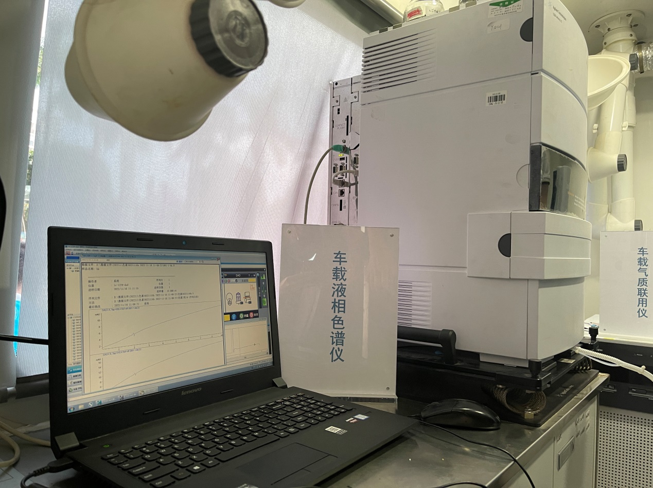 检测人员还向记者展示了车内的各种高科技仪器,如便携式拉曼光谱仪,是一台集成化的食品安全快检设备,深圳每个区都有一台。拉曼光谱是一种散射光谱,能够反映分子的振动和转动信息,通过对这些光谱图进行分析可以获得被测物质的分子结构,准确地识别食品中的农药、兽药残留、食品添加剂和非法添加物等危害物;还有车载液相色谱仪,由溶剂柜、泵、自动进样器、柱温箱和检测器组成。待测样品经过处理后使用这台仪器对目标物的相关性质进行检测,数据经过分析之后通过图谱的形式输出。这台设备可以检测食品添加剂及食品非法添加物,检测项目主要有色素(如日落黄、苋菜红)、甜味剂(如糖精钠、安赛蜜)和防腐剂(如山梨酸、苯甲酸)等。检测人员介绍,液相色谱仪一般是放在实验室的,但通过市计量检测院的专业化改造,把这台液相色谱仪搬到了快检车上,让快检车成为高科技移动实验室,开到市民的家门口,为市民提供更加方便的食品安全保障服务。