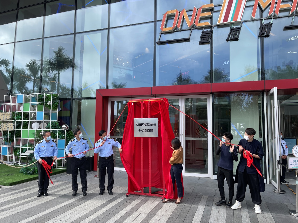 在本次行动开始前,深圳市市场监督管理局盐田监管局对壹海城ONE MALL购物中心,进行了“盐田区餐饮单位全优良商圈”的授牌仪式。据了解,盐田区壹海城ONE MALL商圈成立于2018年12月,商圈内共30家餐饮企业,餐饮单位种类覆盖了中型餐馆、小型餐馆、微小餐饮企业,2022年盐田市场监管局对该商圈餐饮单位进行指导,全面提升企业食品安全管理水平,及时消除食品安全隐患,目前这30家餐饮企业达到A级有10家,B级有20家,优良率达到100%。