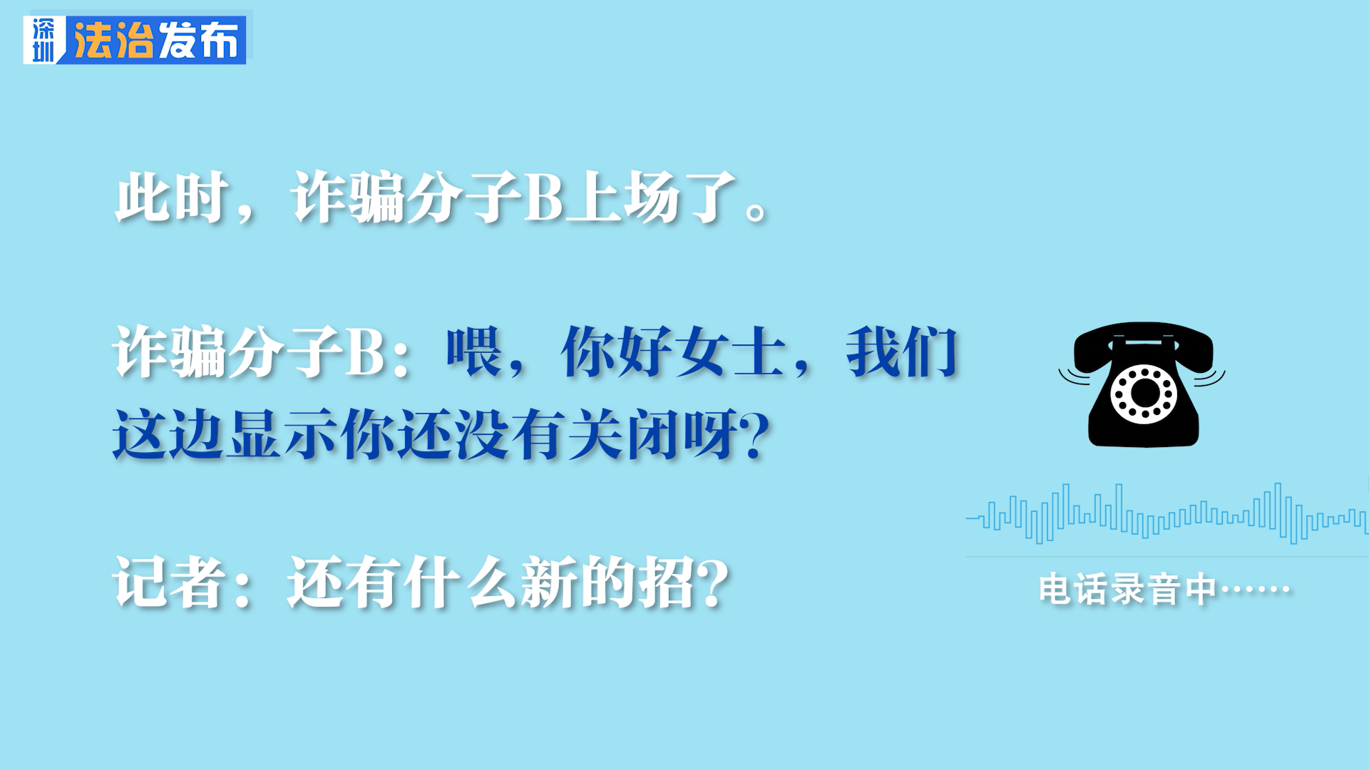 诈骗分子A:(语速很快)但是我们这边系统显示你没有关闭成功啊!如果关闭成功的话……