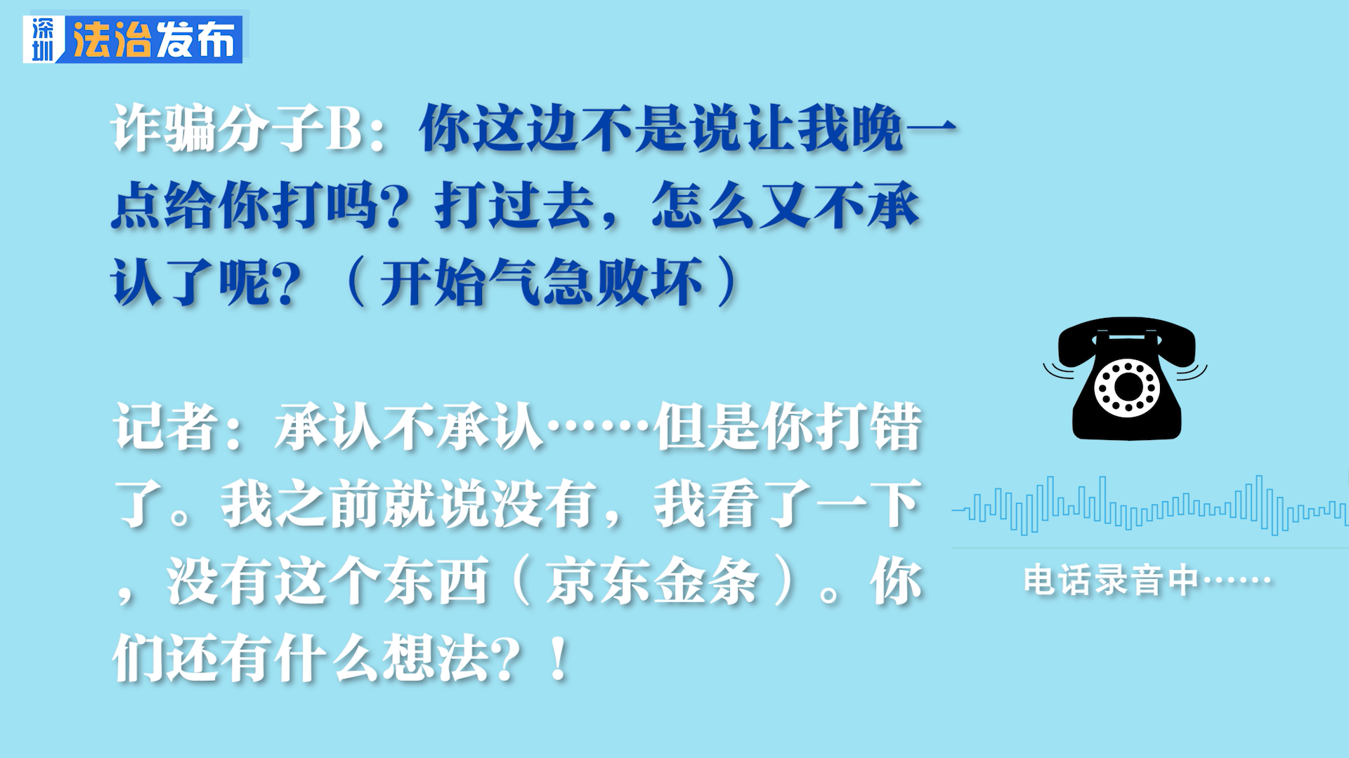 读特客户端深圳新闻网2022年11月23日讯(记者 张玲 翁任莹)警惕金融诈骗新骗局!近日,各地陆续有报道诈骗分子冒充京东客服要求关闭白条、金条的新话术,万万没想到,诈骗分子11月22日就将电话打给了深圳新闻网法治新闻记者,接下来的事情发展,“画风”渐渐不对了。