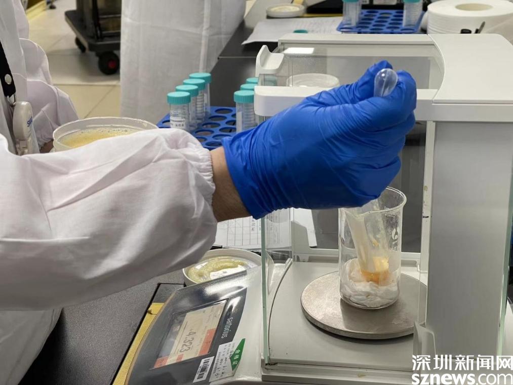 在称样环节,为准确定量检测鸡蛋中药物残留情况,检测人员需要称取适量刚刚制备的蛋液。这个过程主要使用电子天平,用吸管吸取一定量的蛋液到塑料管中,完成称样的步骤。准确的称样是实验室检测工作开始,为了保证结果的准确性,每份样品需要称取两份平行样品进行检测。