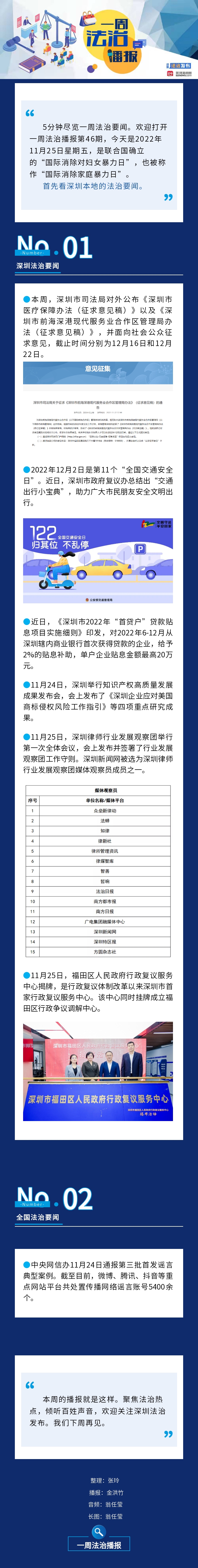 一周法治播报第46期:《深圳市医疗保障办法(征求意见稿)》公布