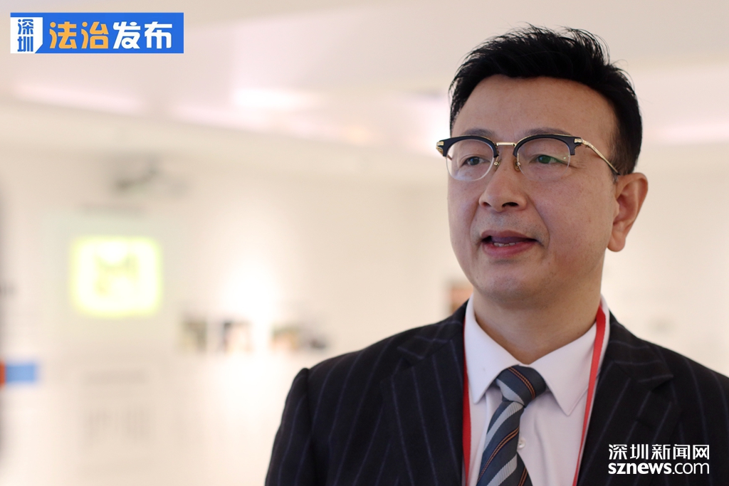 深圳中院政治部组教处处长陈厚铭接受记者采访时表示,典型案例是提升人民群众司法满意度的生动实践。(张玲 摄)