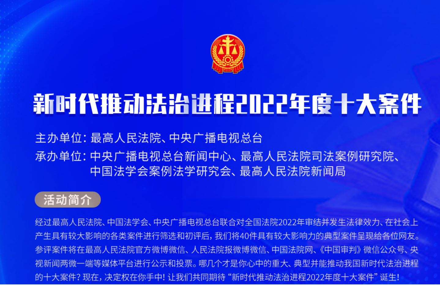 读特客户端·深圳新闻网2022年12月29日讯(记者 张玲 翁任莹)哪几个才是你心中的重大、典型并能推动我国新时代法治进程的十大案件?现在,决定权在你手中!
