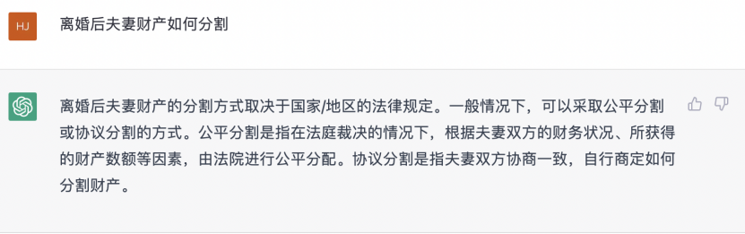 接下来我们让ChatGPT回答专业的法律咨询,并和法律版的ChatGPT——得理法问进行对比,看看结果如何。