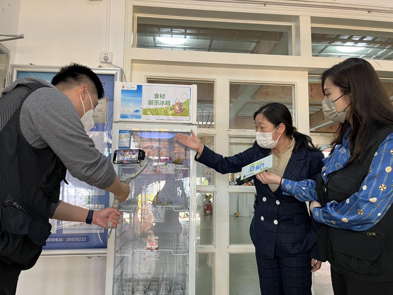 后厨入口处摆放了食材展示冰箱