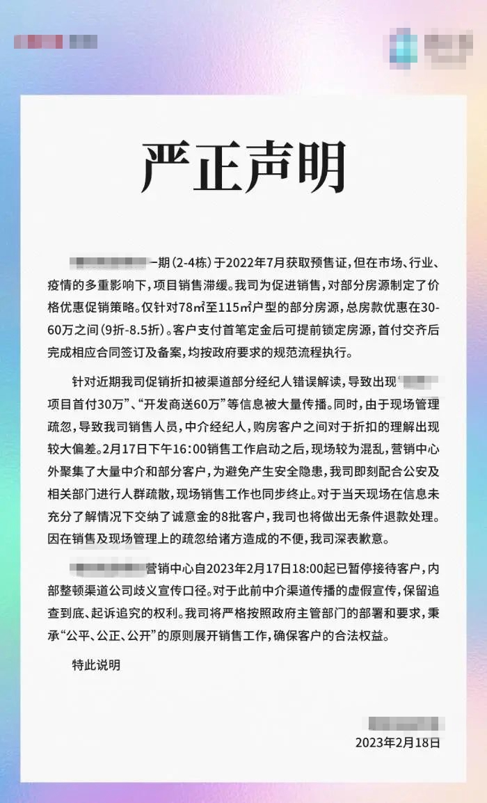 记者注意到,2022年,该楼盘就曾因零首付事件被挂上热搜。当时原定在2022年8月11日至8月14日推出“零首付购三房”活动,但活动推出不到半天就被相关部门叫停。房地产中介协会于2022年8月12日就此发布了《关于警惕“零首付”购房风险的郑重提示》。