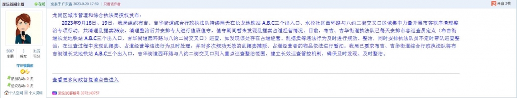 涉及单位:龙岗区城市管理和综合执法局、龙岗区宝龙街道办事处