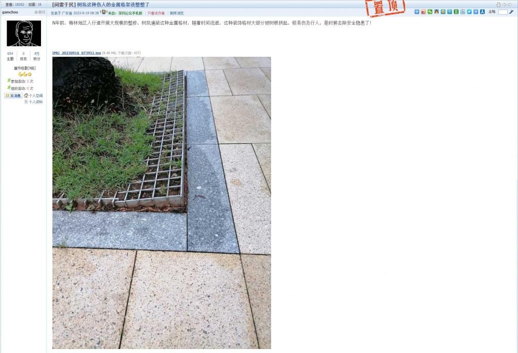 3、帖文《树坑这种伤人的金属格架该整整了》