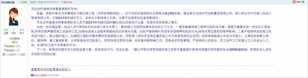 19. 帖文《龙岗区龙城街道盛龙路为何常年施工?何时止?》