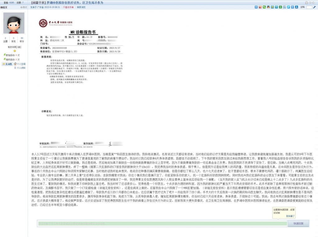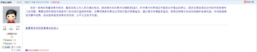 2、帖文《罗湖中医院存在医疗过失,区卫生局不作为》