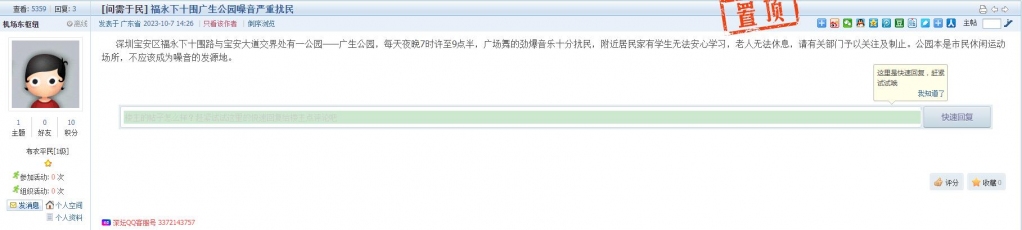 6、帖文《福永下十围广生公园噪音严重扰民》