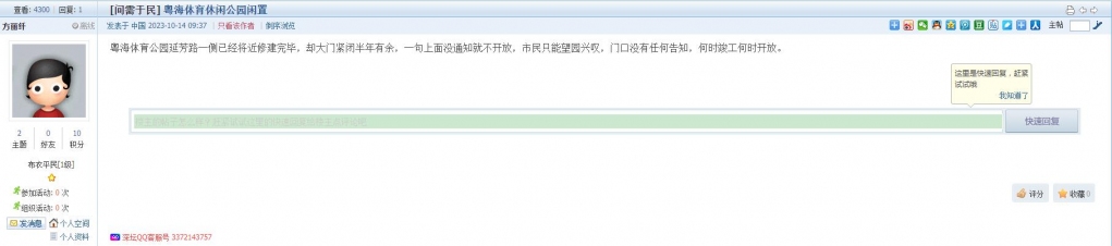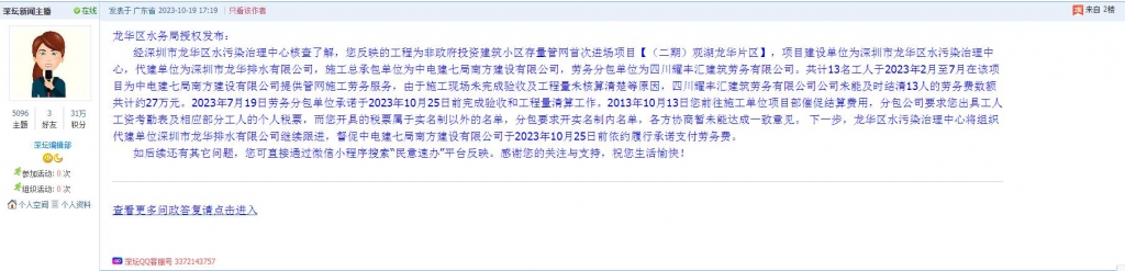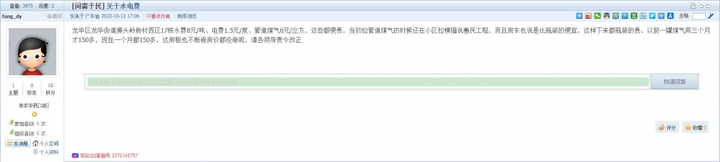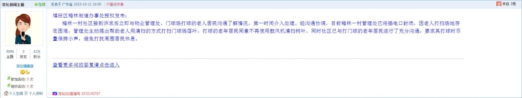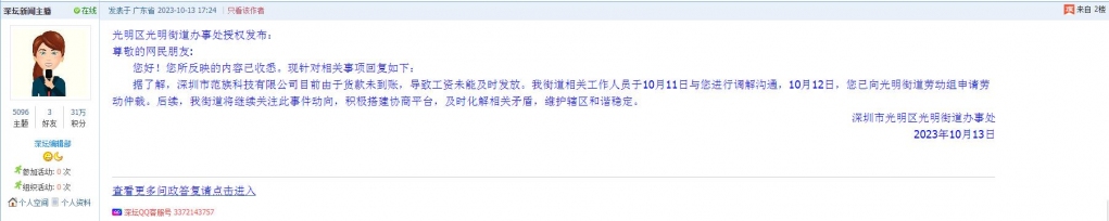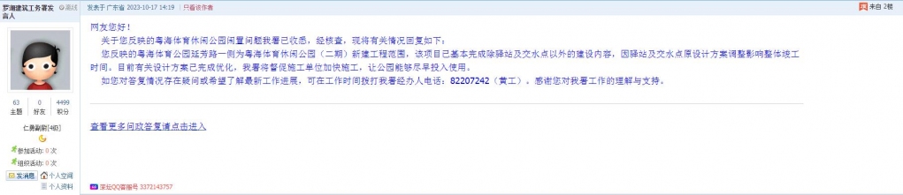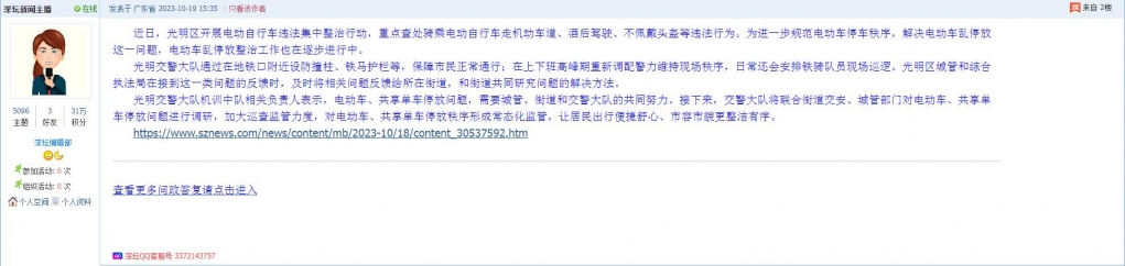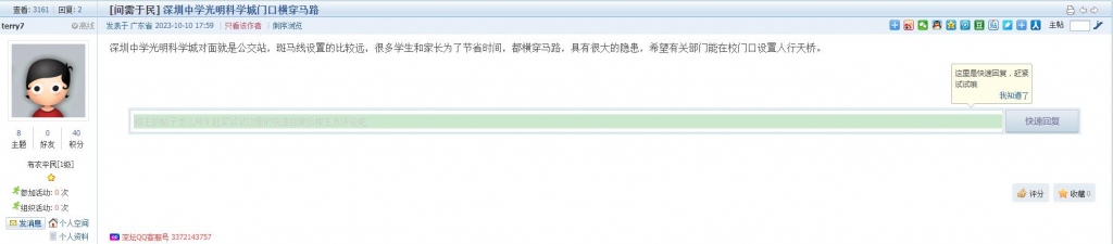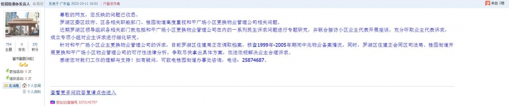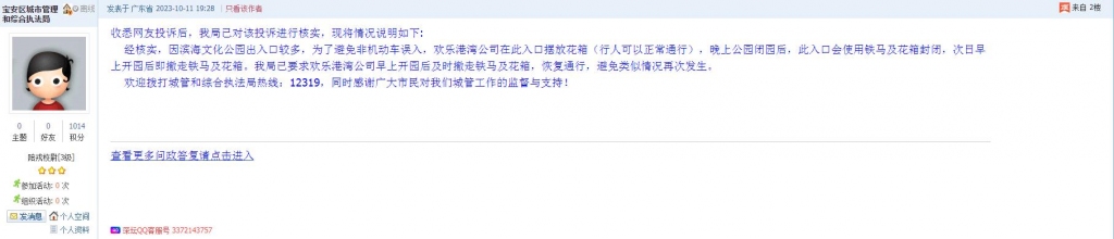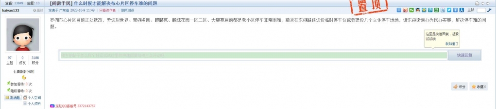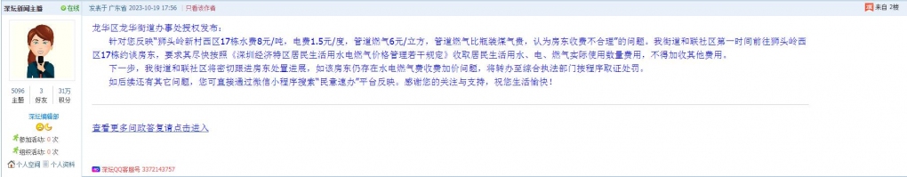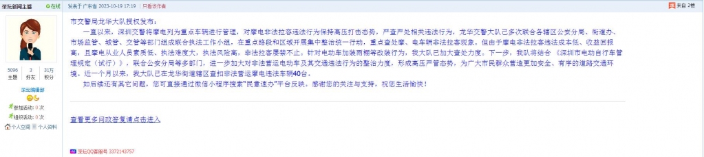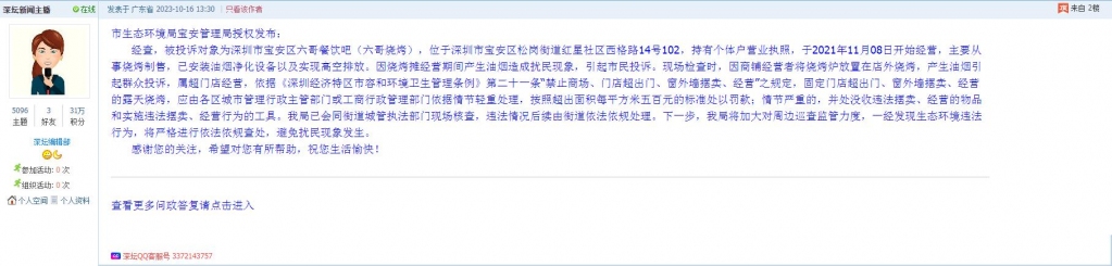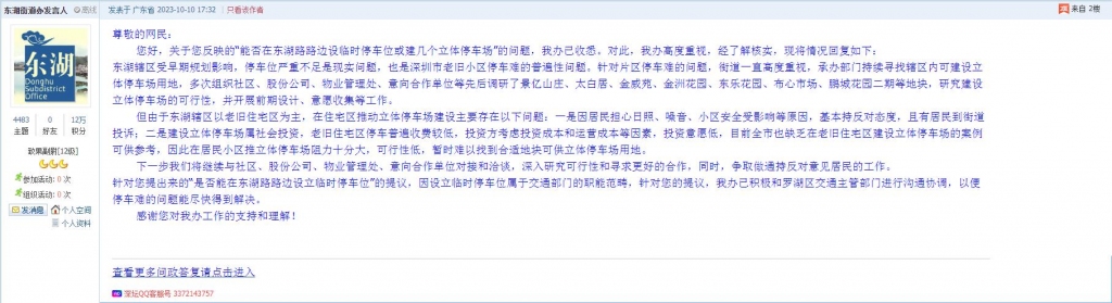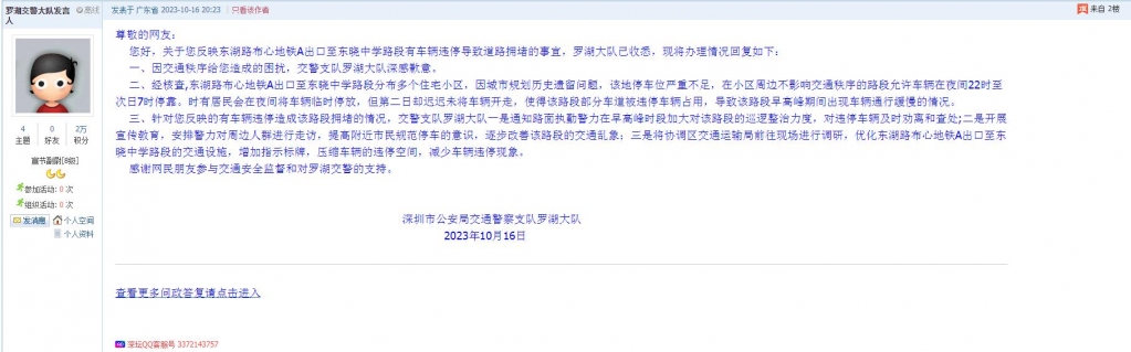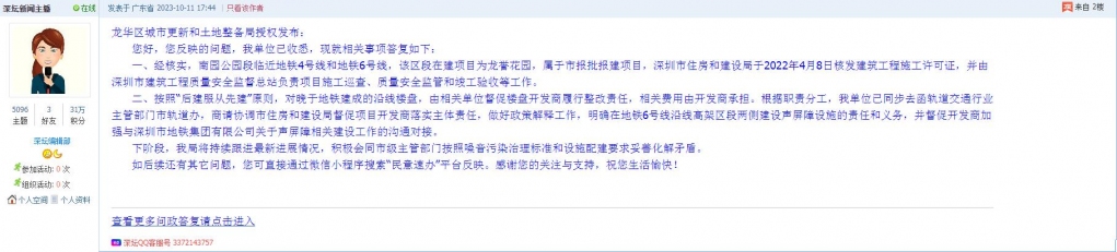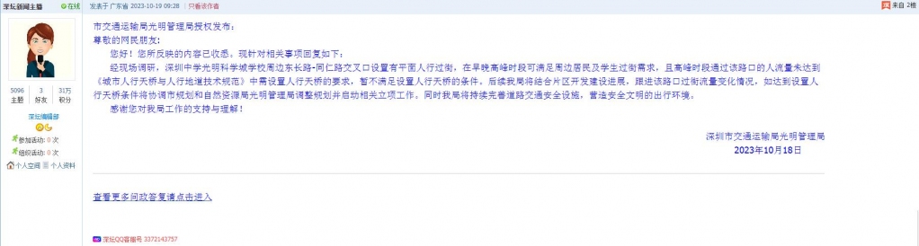 各职能单位如需对网友反映的问题进行回应,可在深圳论坛注册官方账号并通过认证,回帖进行回应。