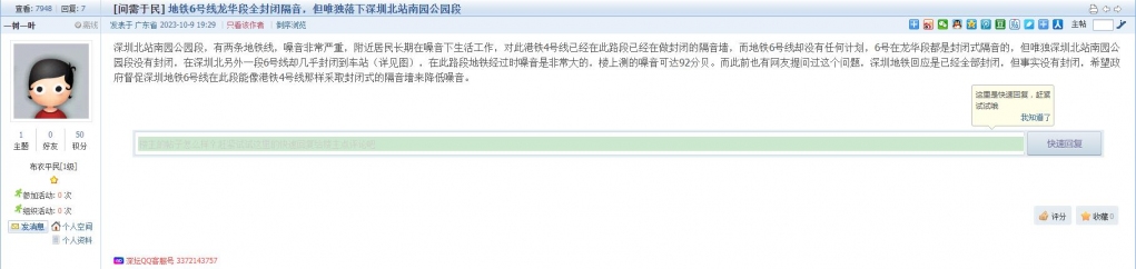 2、帖文《地铁6号线龙华段全封闭隔音,但唯独落下深圳北站南园公园段》