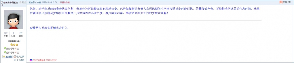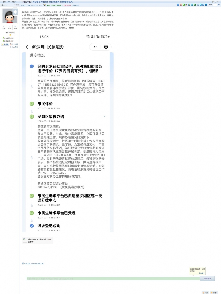 9、帖文《投诉黄贝岭祠堂广场的锣鼓队 长期噪音扰民》