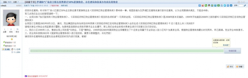 6、帖文《罗湖和*广场业主联名投票超过50%更换物业,市住建局和街道办包庇垃圾物业》