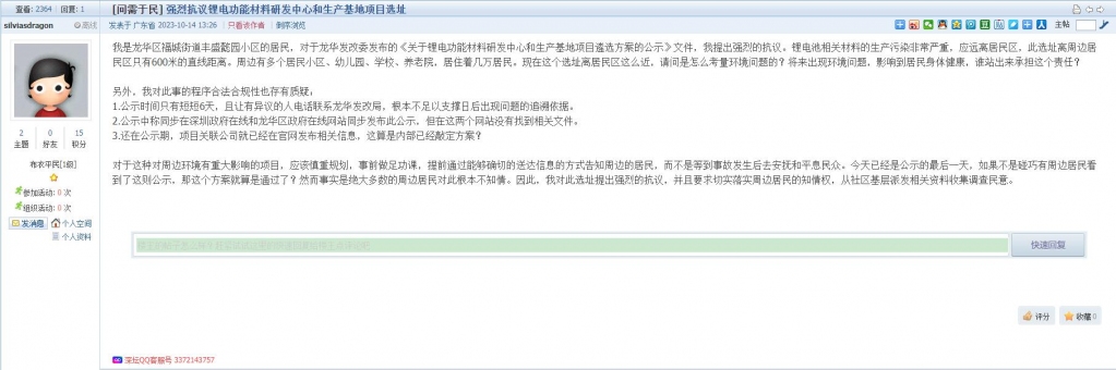 17、帖文《强烈抗议锂电功能材料研发中心和生产基地项目选址》