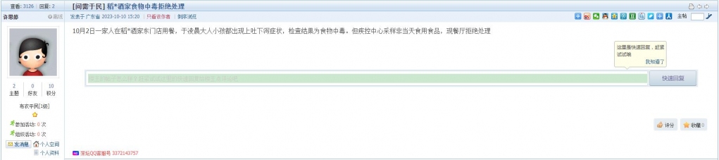 4、帖文《稻*酒家食物中毒拒绝处理》