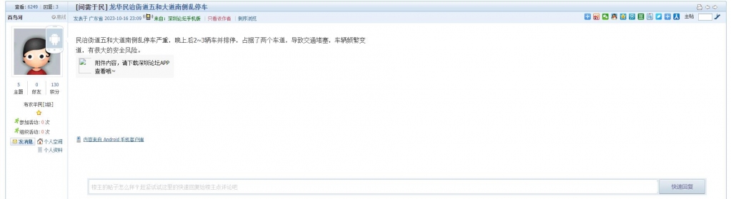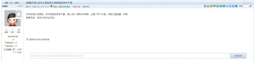 6、帖文《龙华大浪街道大浪南路乱停车严重》