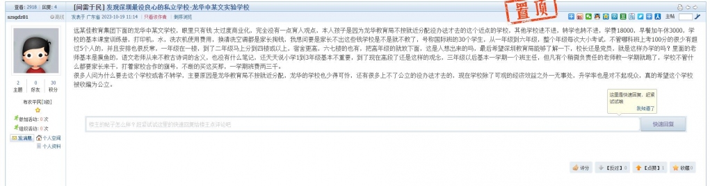 10、帖文《发现深圳最没良心的私立学校龙华中某文实验学校》