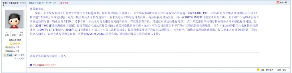 5、帖文《罗湖住建局与茂业集团那些事(罗湖区和平广场)》