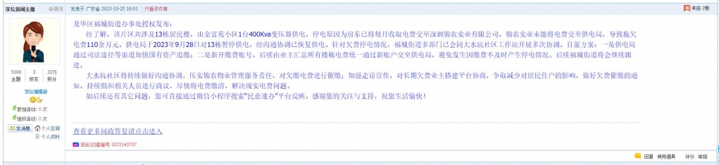 16、帖文《无奈!物业挪用小区住户缴交电费高达40万,小区住户将面临断电危机!》