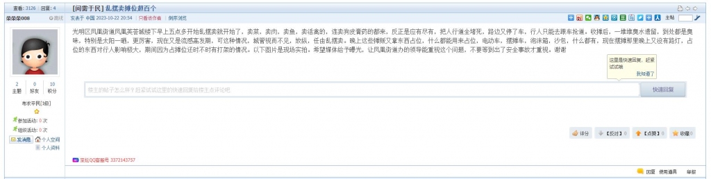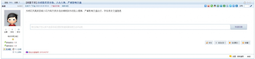 3、帖文《市政路变菜市场,人山人海,严重影响交通》