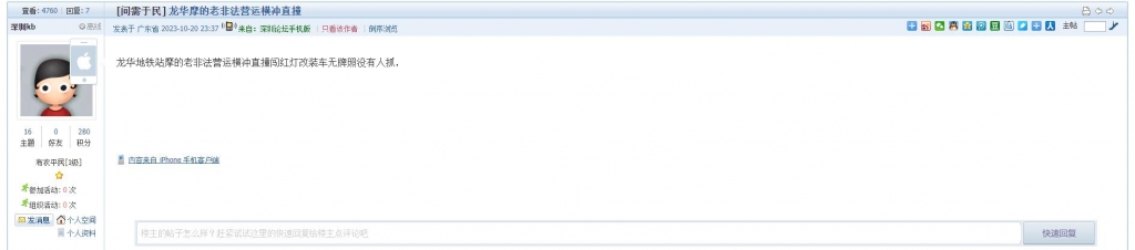 7、帖文《龙华摩的老非法营运横冲直撞》