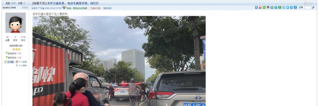 8、帖文《龙华交通乱象,电动车随意穿梭,闯红灯》