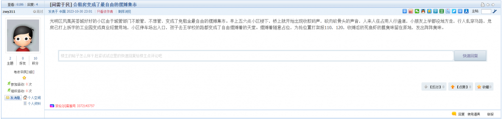 3、帖文《公租房变成了最自由的摆摊集市》