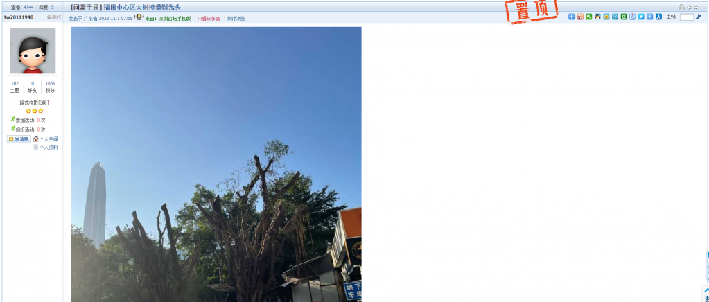 9、帖文《福田中心区大树惨遭剃光头》