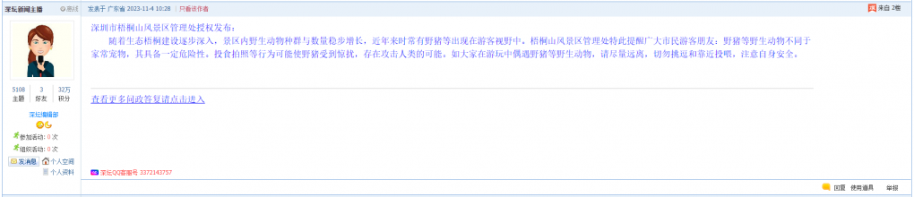 6、帖文《梧桐山野猪不怕人啊》