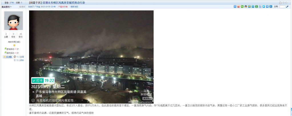 1、帖文《深圳市光明区凤凰英荟城受周边污染》