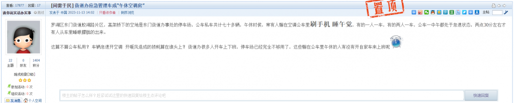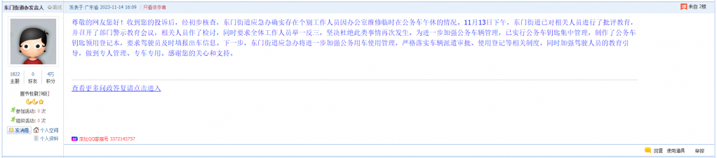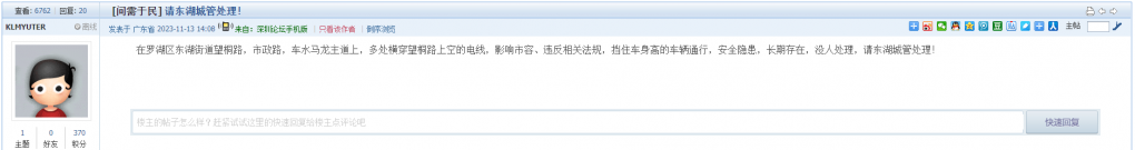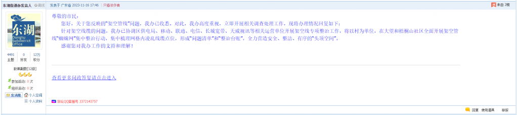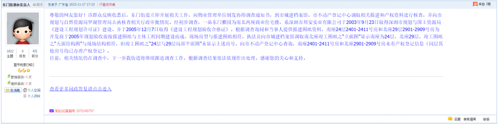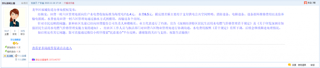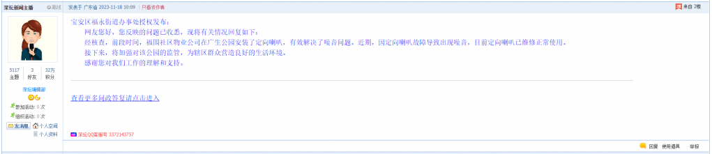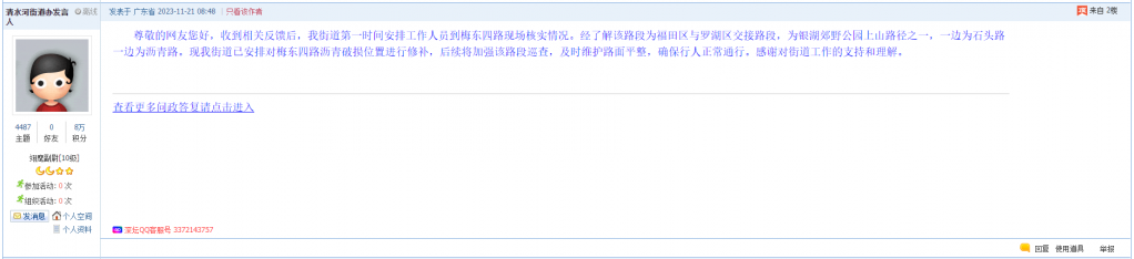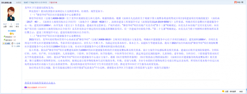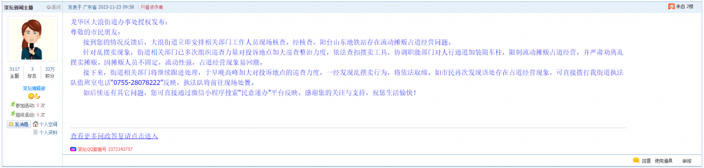 各职能单位如需对网友反映的问题进行回应,可在深圳论坛注册官方账号并通过认证,回帖进行回应。