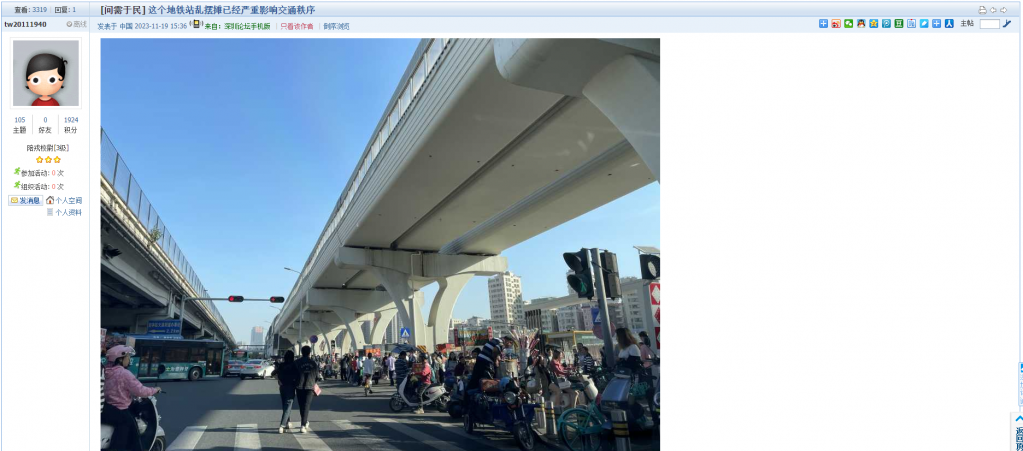 14、帖文《这个地铁站乱摆摊已经严重影响交通秩序》
