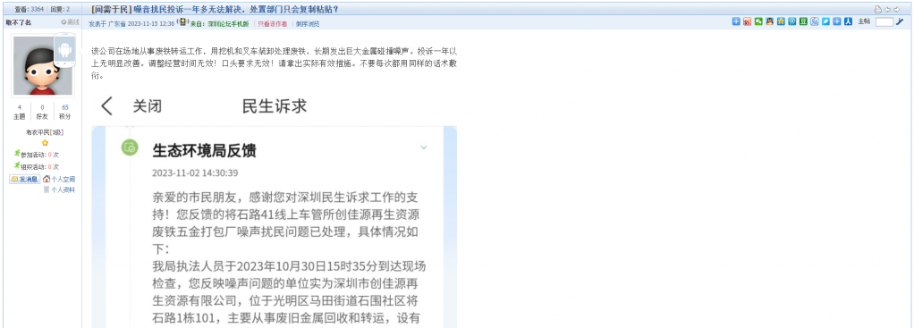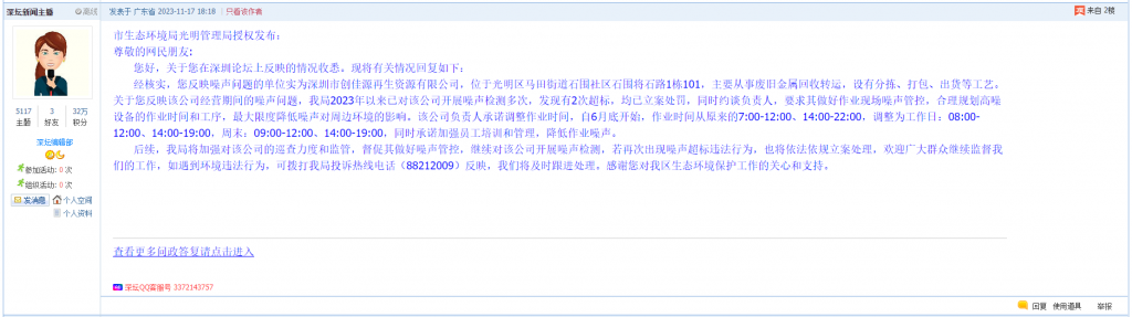 网友您好!我局收到您在深圳论坛上反映的事项,经调查,现答复如下: