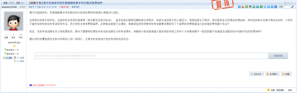 7、帖文《建文外国语学校变相强制性要求学生购买收费APP》