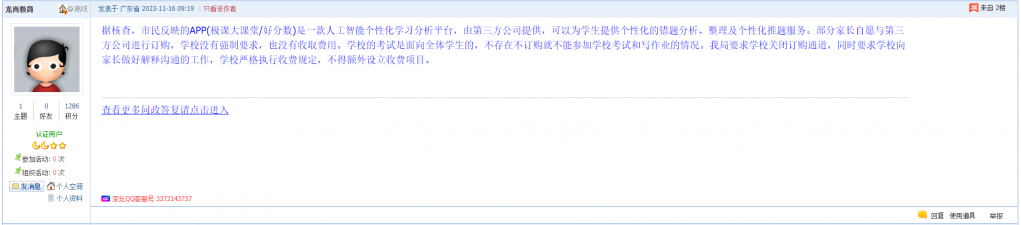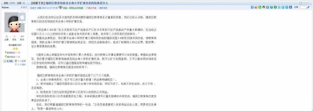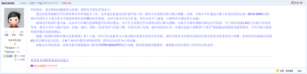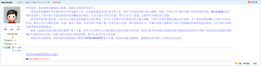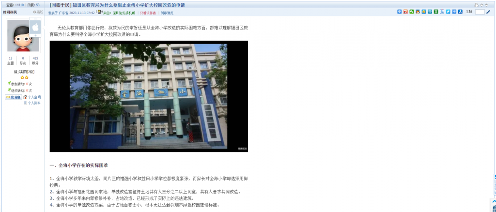 1、帖文《福田区教育局为什么要阻止全海小学扩大校园改造的申请》
