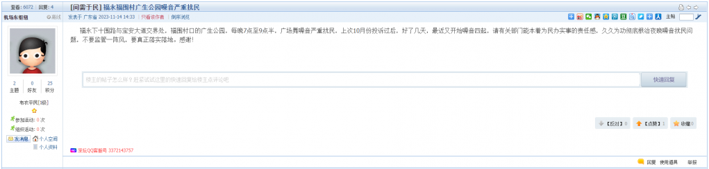 8、帖文《福永福围村广生公园噪音严重扰民》