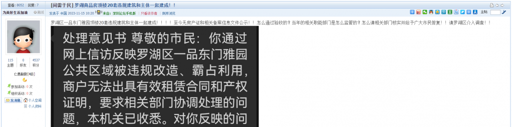 8. 帖文《请欣赏我与罗湖区住建局在I深圳上关于和平广场物业的民生诉求的问答》