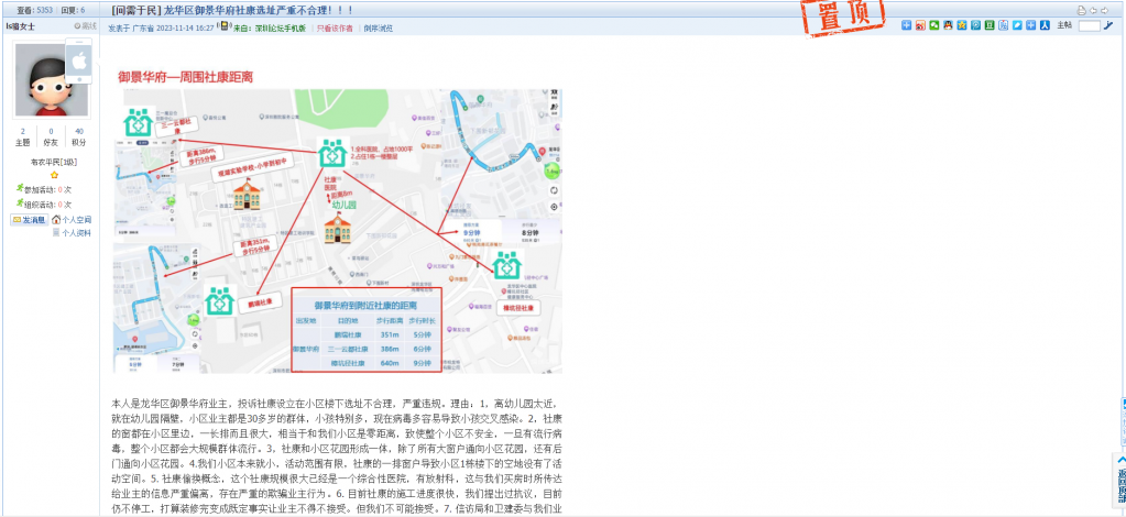 13、帖文《龙华区御景华府社康选址严重不合理!》