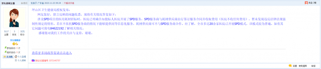 涉及SPD项目的医用耗材招标时,医院已明确告知投标人医院开展了SPD服务,SPD服务商与耗材供应商自行签订服务合同并收取费用(医院不收任何费用),暂未发现违反法律法规强制性规定的情形。若在不依托SPD服务商的情况下能够提供同等信息化服务,耗材供应商可不与SPD服务商合作。经了解,全市多达20余家医院已开展SPD模式,该模式较为普遍。如有其他问题可致电84622192了解相关情况。感谢您对我们工作的关注与支持,谢谢。